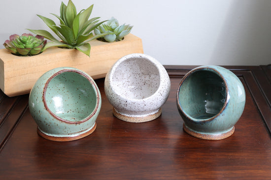 Spice up your kitchen with the Ceramic Sat Pig, the perfect way to store your salt. Hand thrown by resident potter Amy Bishop, this salt pig is made from high-quality ceramic stoneware. A charming and functional addition to any home. (No messy snouts or oinking here!)
