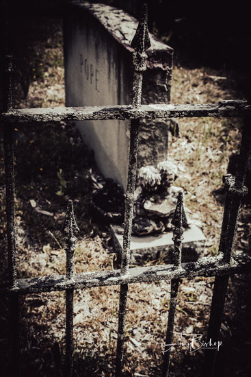 Fine art photography print, matted. From the "Lowcountry Series" this haunting image was taken at the Presbyterian Church Graveyard in Edisto Island, SC.