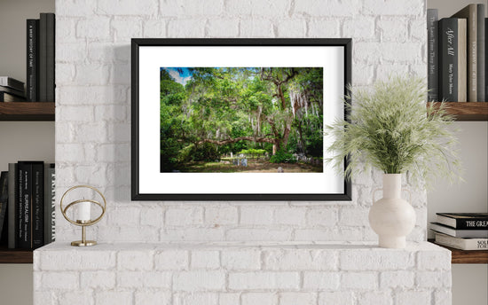 Fine art photography print, matted. From the "Lowcountry Series" this serene image was taken at Edisto Presbyterian Church Graveyard in Edisto Island, SC.
