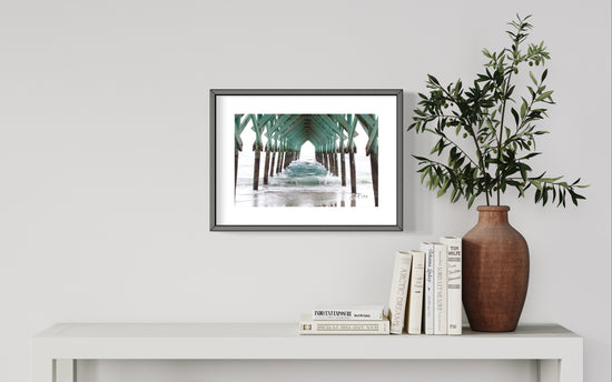 Fine art photography print, matted. This captivating image was taken beneath the Crystal Pier in Wrightsville Beach, NC.