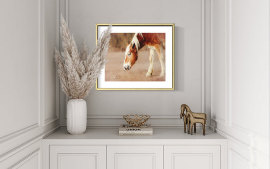 Fine art photography print, matted. This minimalist image celebrates the natural beauty of a very special therapy horse.