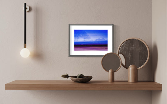 Fine art photography print, matted. A stunning abstract with a vibrant purple and blue color story that is reminiscent of a watercolor painting. Taken at the North Carolina Art Museum in Raleigh, NC.