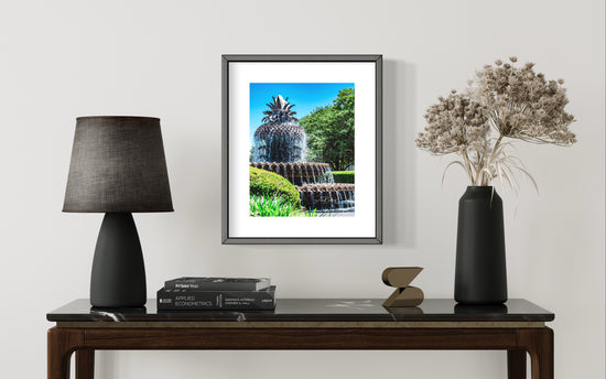Fine art photography print, matted. This image is a part of the "Lowcountry Series". It was taken in Charleston, South Carolina and depicts the iconic Pineapple Fountain.