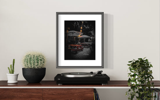 Fine art photography print, matted. This image was taken at Bombshell Beer Company in Holly Springs, NC. It captures all the feelings of relaxing on a great patio with a beer and friends on a perfect summer night.